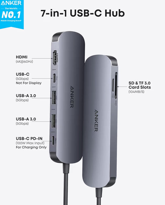 Anker Adaptador USB-C multi puerto 7 en 1 HBM1 4K Tarjeta SD y puerto de 85 W