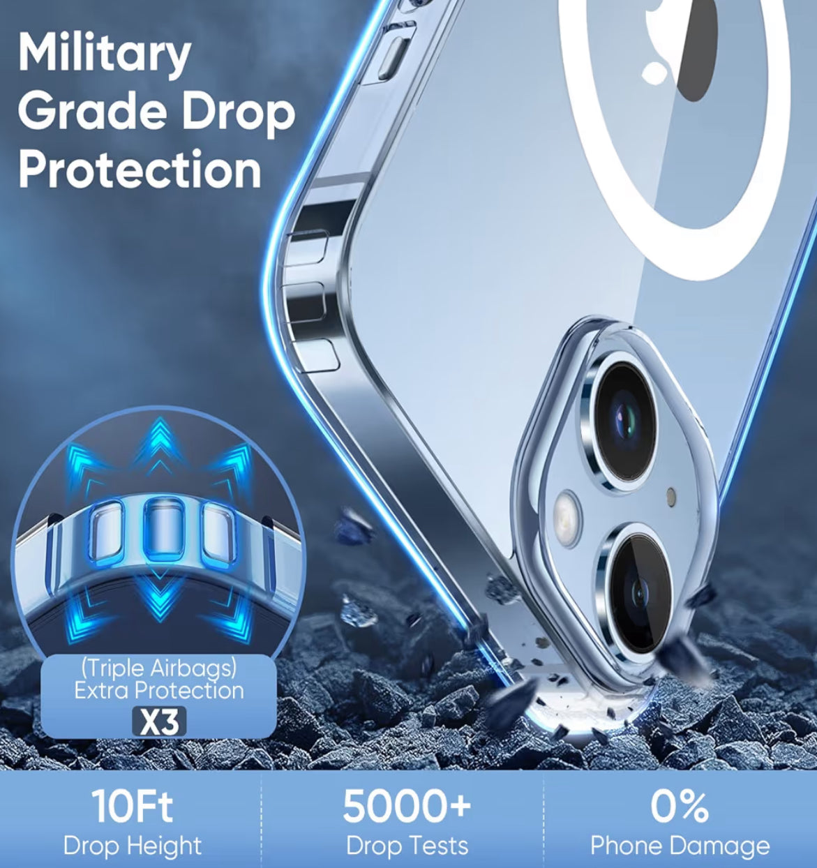 - ✅ 【12 bolsas de aire con protección adicional contra caídas】(a diferencia de otras fundas baratas para iPhone 14 Plus en el mercado). Cada esquina de esta funda transparente Magsafe para iPhone 14 Plus está protegida por 3 bolsas de aire – 12 bolsas de aire en total para absorber golpes y evitar caídas accidentales, golpes y arañazos, el rendimiento anticolisión es 3 veces más alto que otras fundas Magsafe transparentes.