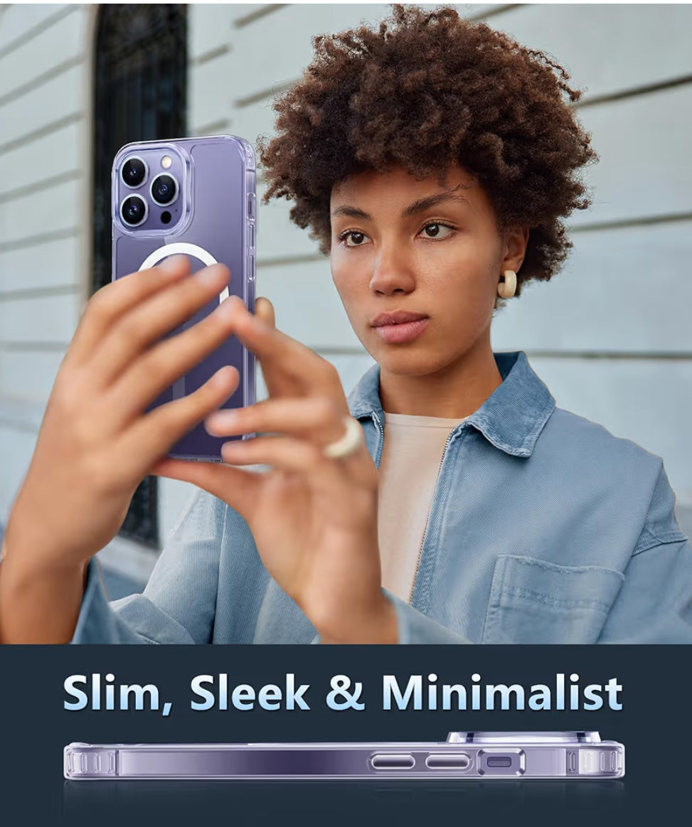 - Fuerte carga magnética: esta funda para iPhone 13/14 Pro tiene un imán fuerte integrado que se adapta a cargadores magnéticos y otros cargadores inalámbricos Qi. Los imanes son tan fuertes que simplemente ajusta el cargador en su lugar mientras se carga, lo que hace que la carga inalámbrica sea más rápida y segura que nunca. La funda es compatible con todos los accesorios magnéticos como baterías externas, cargadores inalámbricos, billeteras, soportes de automóvil y estaciones de carga inalámbricas.