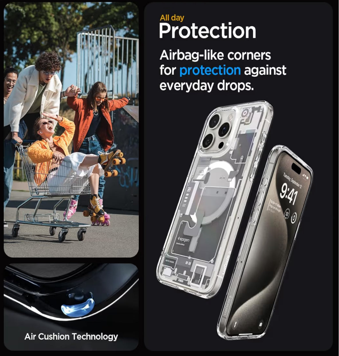 - Carcasa trasera de policarbonato transparente integrada con imán - Compatible con MagSafe