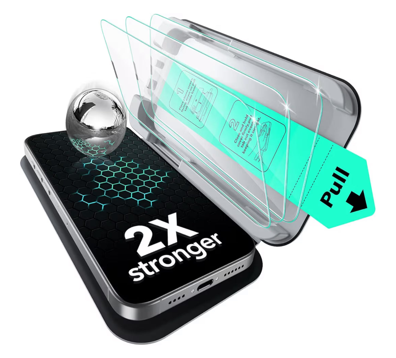 - Defensa de grado militar: vidrio templado ultrarresistente que resiste hasta 33 lb de fuerza para defender tu pantalla contra caídas, golpes y rayones.