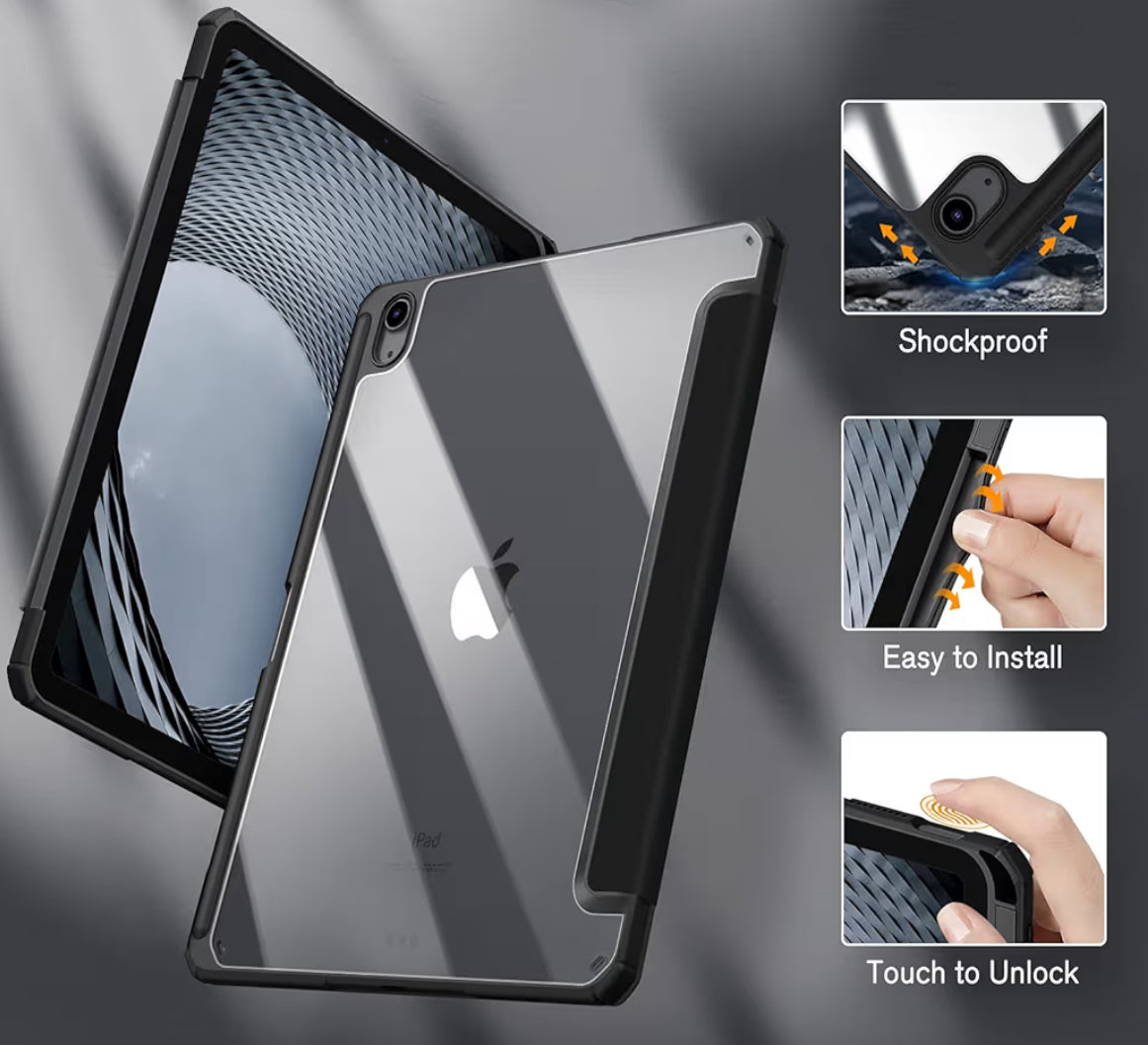 - La parte trasera rígida de esta funda completa con protectores de TPU flexible antigolpes protege tu iPad de golpes, caídas e impactos. La parte frontal interior es de microfibra suave que evita que tu tablet se raye. Y su parte trasera transparente te permitirá mostrar con orgullo el icono de Apple.