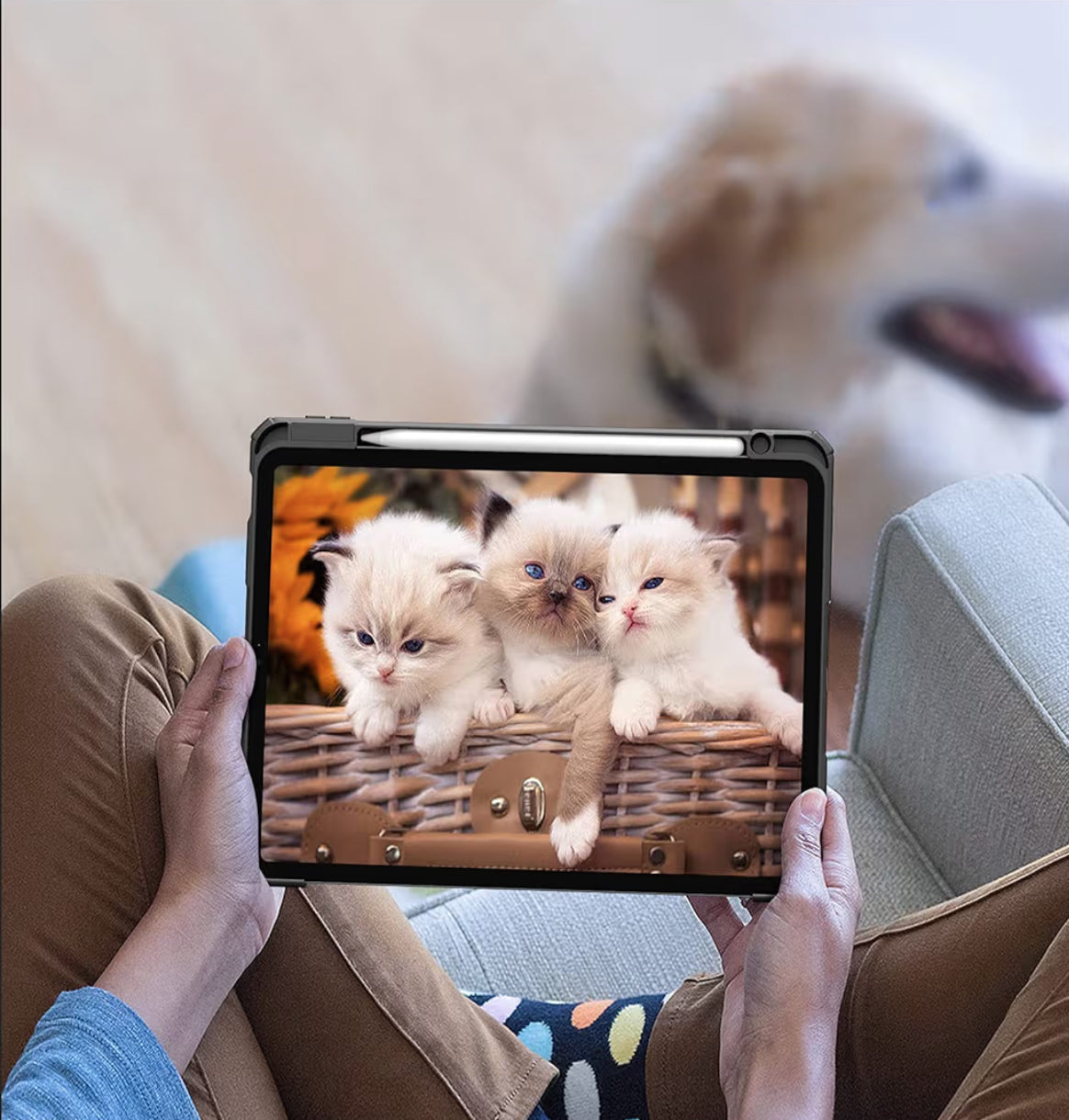 - Funciona sin problemas con el Apple Pencil de 2.ª generación magnético y es compatible con la carga inalámbrica. Gracias a los tres pliegues de la parte frontal, la funda para iPad Air 4 se puede convertir en una base de apoyo para la tablet para ver películas o videos y en un soporte para escribir con comodidad.