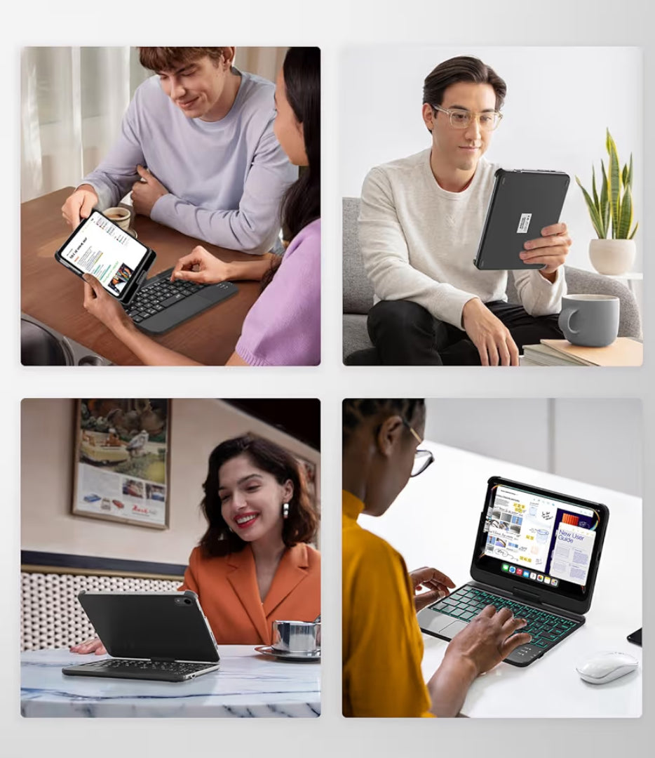 - Trackpad multigesto: equipado con un panel táctil inteligente que puede controlar y navegar con precisión, realizar la combinación de funciones de tableta y computadora, y disfrutar de una excelente experiencia de portátil. Controla tu iPad mini con múltiples gestos. Edite documentos, navegue por la web y cree presentaciones con una velocidad inigualable, lo que le brinda la comodidad de una alta productividad. Navegar incluso por los flujos de trabajo más complejos nunca ha sido tan fácil.