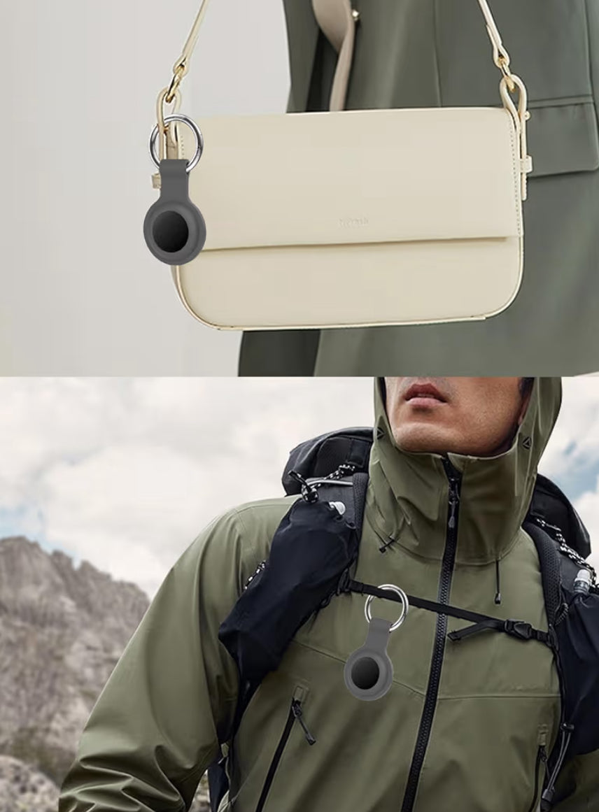 - Fácil de usar, la estructura circundante hace que sea bastante fácil de instalar y desinstalar, con el llavero de anillo, puedes pegar los AirTags fácilmente a tus llaves, bolsos y otras pertenencias