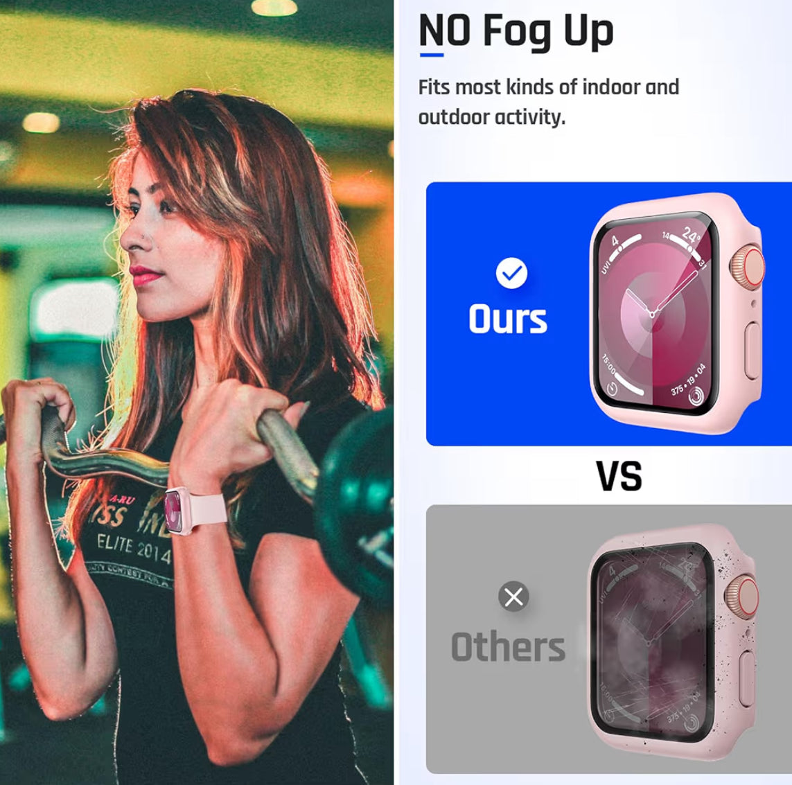 - Diseño impermeable mejorado: la funda utiliza un tratamiento impermeable, evita eficazmente que el agua y la humedad entren diariamente y se empañen, no afecta la sensibilidad táctil de tu iWatch. Se adapta a la mayoría de tipos de deportes de interior y exterior. Nota: no es adecuada para impermeabilizaciones profundas como el surf y la natación.